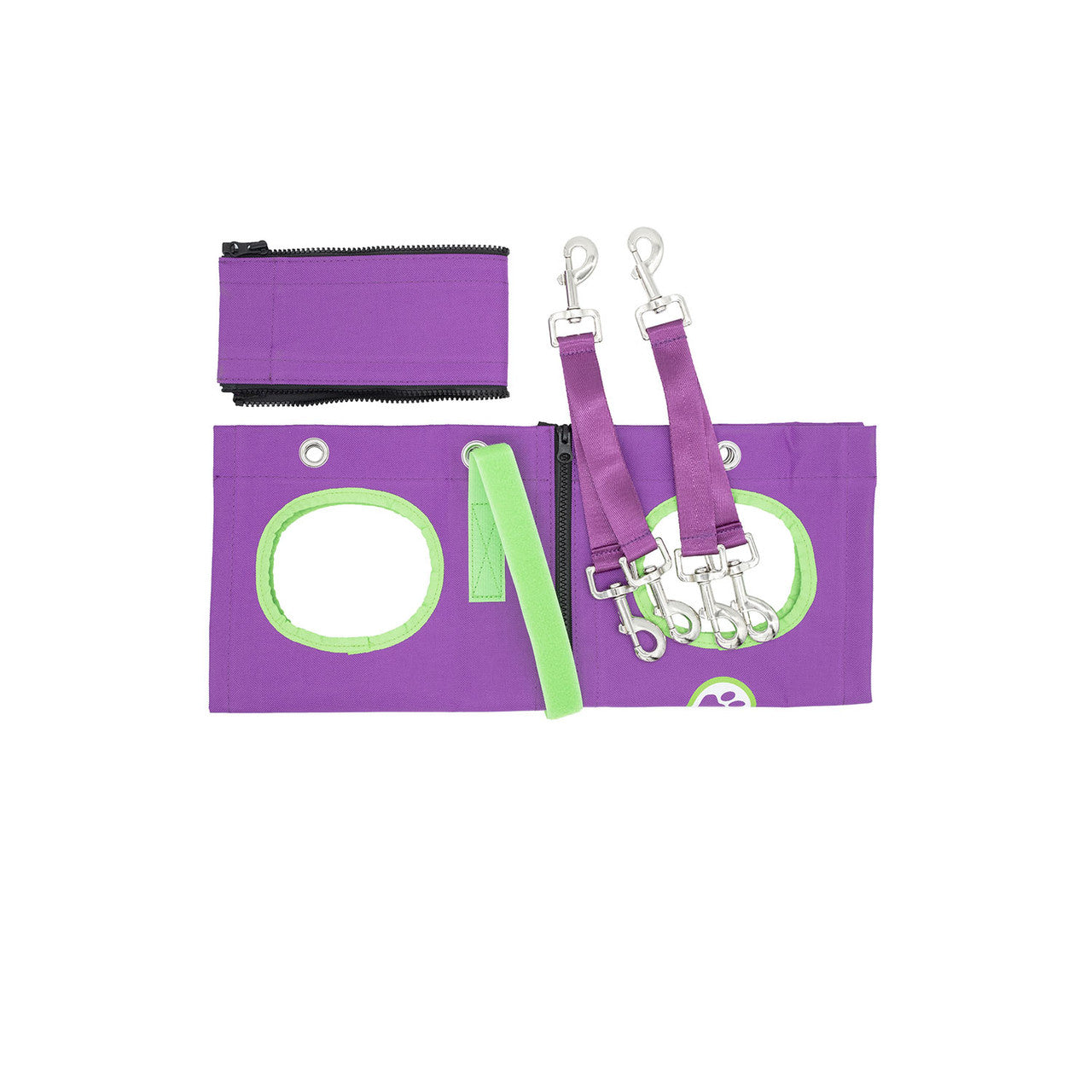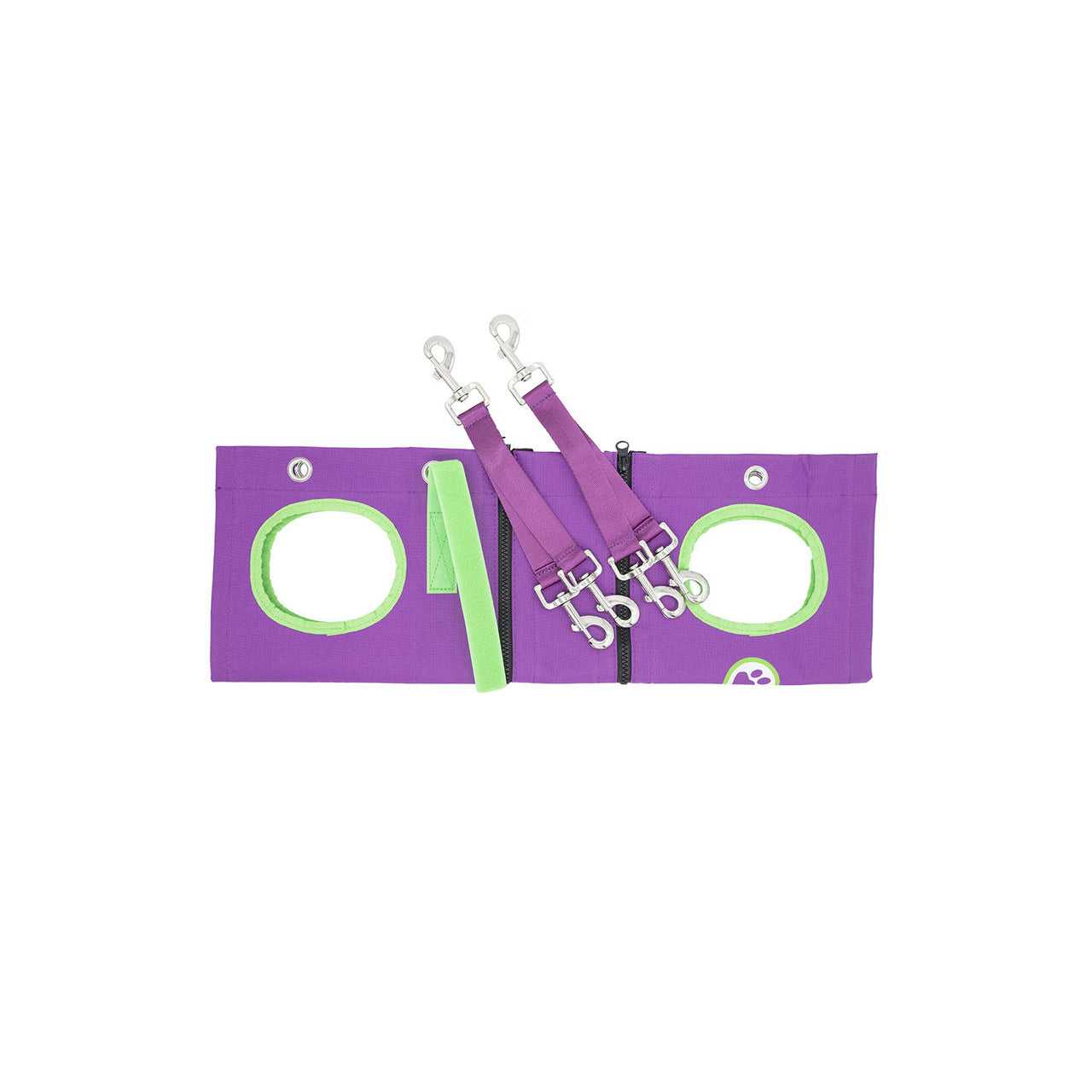 To use, place your client's legs through the holes, wrap them in the hammock and use the included s-hooks to safely suspend the pet from your grooming table's arm. The hammock will balance the pet's weight, so they are always comfortable during use.