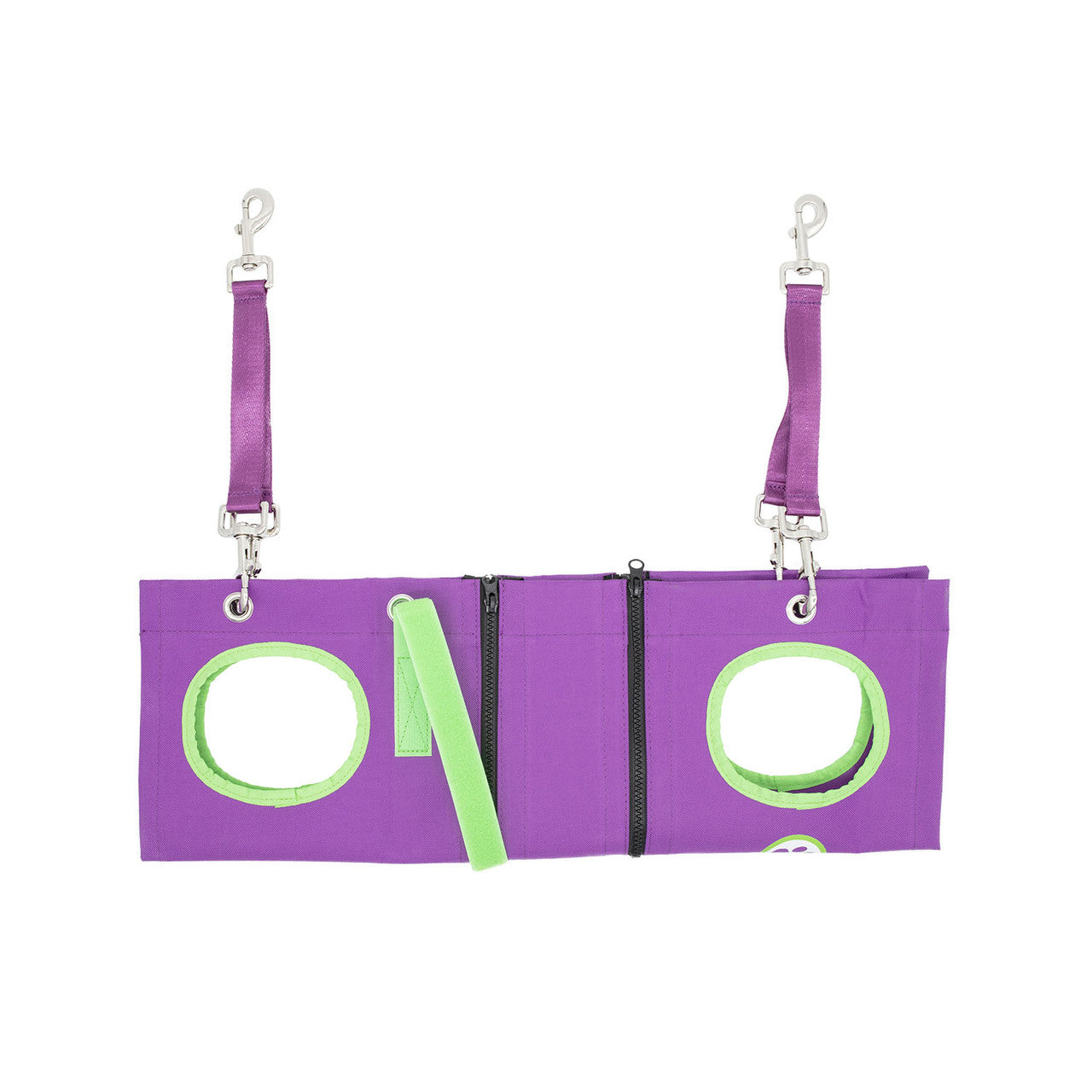 - To Use: Place client's legs in holes, wrap hammock around and use the included s-hooks to safely suspend.
