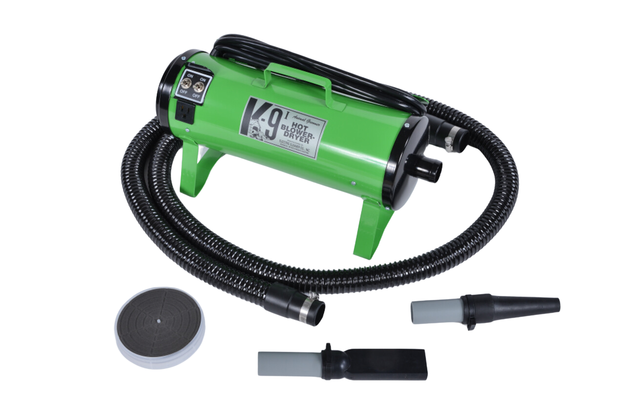 Made from 18-gauge steel body, portable and lightweight. Perfect for a professional grooming job. Two 18,500 rpm motor turbines. May be suspended or set on the ground. Includes dryer, 10-foot hose, blowertip and filter. Drop ships from manufacturer in Wisconsin.