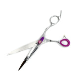 The semi-convex micro-serrated edge improves cutting performance, delivering smooth, consistent cuts. With slightly larger finger holes, they provide a comfortable, balanced grip for precision and control. Designed to withstand the demands of daily grooming, Monk Purples are durable, sharp and reliable for professional use.