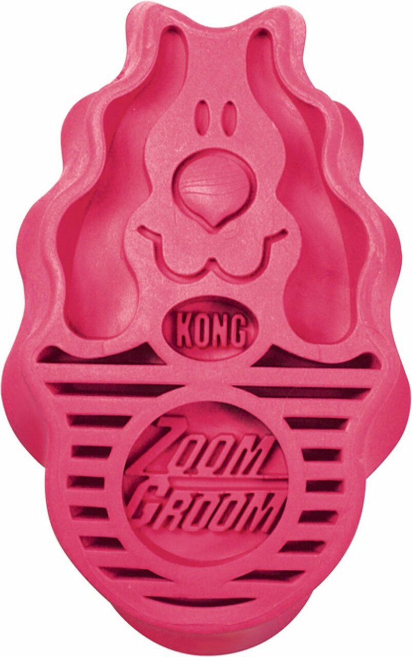 KONG ZoomGroom Rubber Curry Brush for Dogs, Raspberry